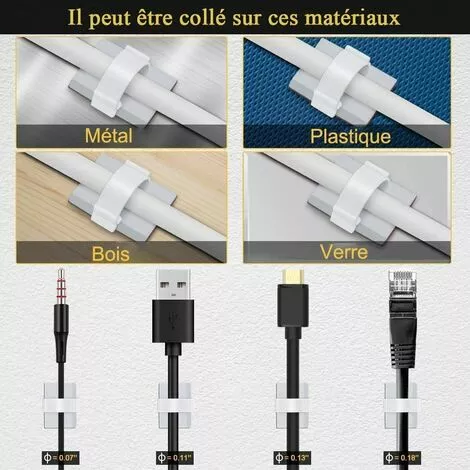 【Utiliser Sauvagement】Les serre-câbles sont utiles pour organiser les câbles d’ordinateur, les câbles USB, les câbles de télévision, le câble des lumières de Noël et coller sur la plupart des surfaces de la maison, du bureau et de la voiture.