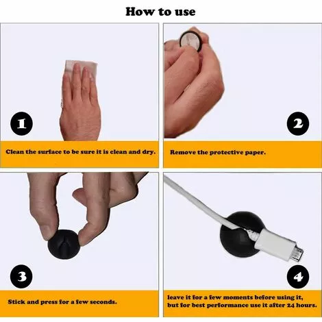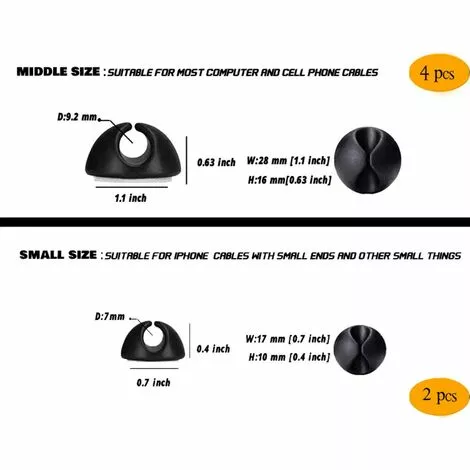 « Pack de 6 serre-câbles : 6 pièces de serre-câbles (4 de taille moyenne pour la plupart des câbles d’ordinateur et de téléphone portable + 2 de petite taille pour les câbles d’iphone avec de petites extrémités) emballés dans une incroyable carte blister, 1 emplacement. : Silicone écologique de haute qualité avec un adhésif 3M puissant ^