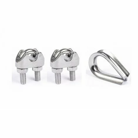 Kit de deux serres-câbles étriers et un cosse coeur pour câble de ø4mm inox A4 AISI 316
