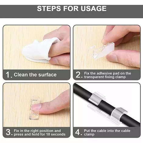 Conseils D’utilisation Assurez-vous que la surface de montage est propre. Aucune salet. poussire. graisse et cire. Veuillez ne pas insrer le cble immdiatement aprs que le clip de cble est coll sur la surface d’utilisation le tampon adhsif double face atteindra l’adhrence la plus forte aprs 24 heures.