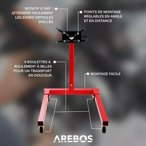 Notre support moteur AREBOS est un must pour tout bricoleur. Avec une capacité de charge allant jusqu’à 570 kg, il est l’aide parfaite pour travailler sur les moteurs ou les boîtes de vitesses.