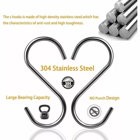 Haute qualité — Notre crochet en S est en acier inoxydable 304 de haute qualité d’une épaisseur de 4,00 mm, sans rouille, solide et bien fait. Ces crochets en S ont une surface lisse et pas d’arêtes vives pour protéger vos mains des rayures. Le crochet en S sera votre meilleur support et votre premier choix d’achat.