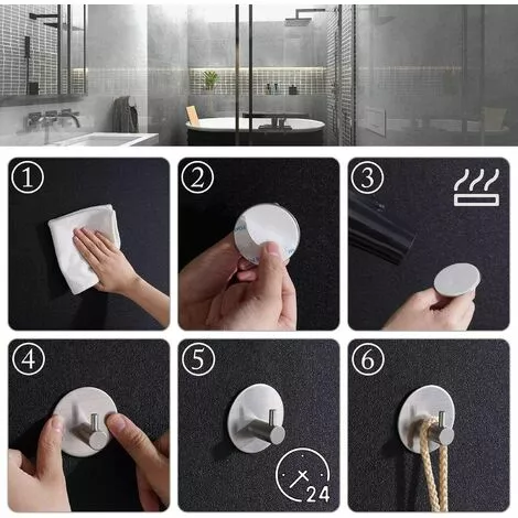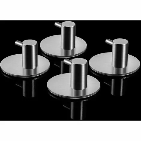 - 4 × crochet auto-adhésif ,4 crochets à serviettes auto-adhésifs, crochets de peignoir ronds, crochets muraux, porte-serviettes de salle de bain et de cuisine en acier inoxydable, patères, pas de perçage