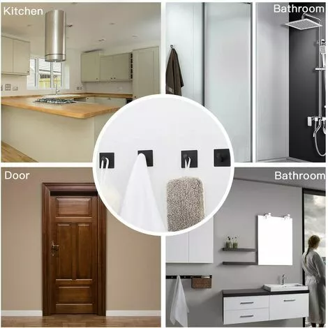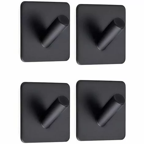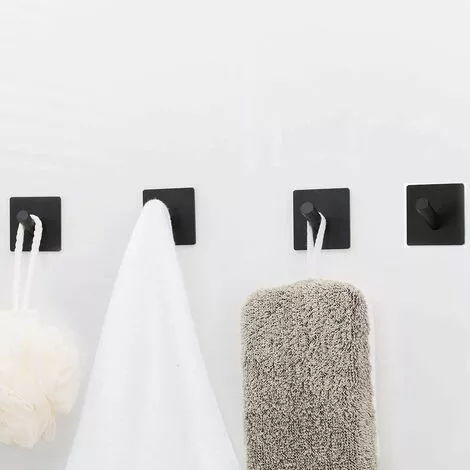 - 4 pièces, crochet à serviette auto-adhésif, noir, crochet à serviette auto-adhésif sans trous pour salle de bain et cuisine crochet à manteau noir en acier inoxydable