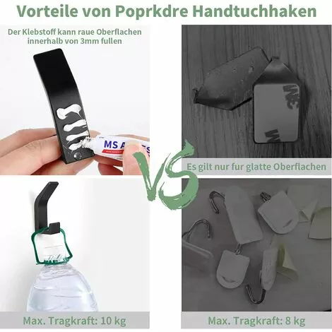 Il y a 2 cintres sur le crochet adhésif. Comparé aux crochets adhésifs normaux, le porte-manteau Poprkdre vous aide à gagner plus d’espace.