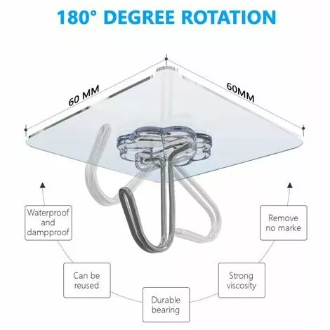 Aspect à la mode et transparent – la conception transparente unique le rend presque invisible, de sorte que le crochet peut être utilisé comme décoration. Un pack de 32 crochets suffit pour une utilisation quotidienne.
