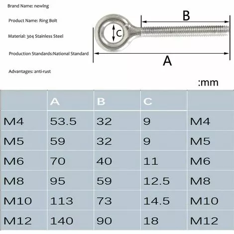 Longueur de la tige de la vis à anneaux intégrale M5 59mm, Longueur du filetage 32 mm, Diamètre intérieur de la bague 9mm (taille du produit en millimètres, 1 mm = 0,0393701 pouces)