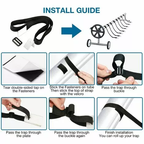 Un ensemble de 8 bandes fixes de la piscine – complète Kits de fixation (8) Pour sĂ©curiser les membranes solaires de la piscine ou la piscine Ă la bobine de piscine. Chaque bande mesure 1,80 m de long (peut ĂŞtre raccourcie au besoin), de sorte qu’il est très flexible. Ces clips peuvent ĂŞtre facilement fixĂ©s sur votre film solaire ou votre chiffon impermĂ©able. De plus, il y a une boucle de nylon violente sur la bande. Collez l’extrĂ©mitĂ© auto-adhĂ©sive sur la bobine, puis fixez la bande sur la bande