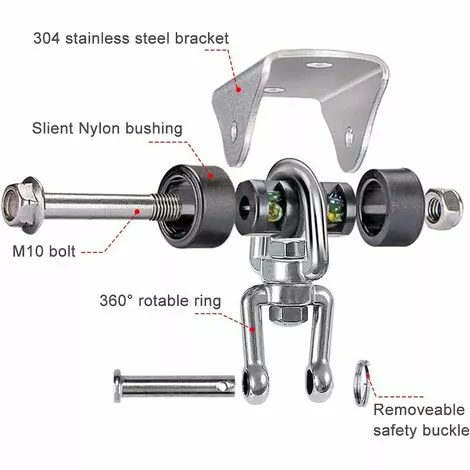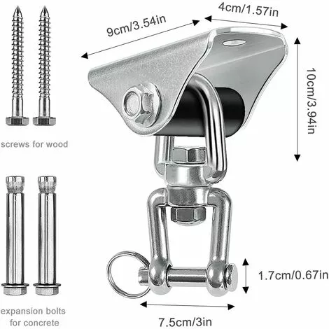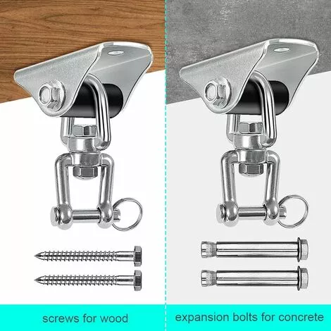 APPLICATION LARGE: Nos cintres pivotants sont applicables pour le béton et les poutres en bois, adaptés aux cordes de suspension intérieures et extérieures, également le kit de suspension de balançoire parfait pour le plafond, les chaises hamac balançoire, les balançoires de porche, les chaises pivotantes, les sacs de boxe, ou suspendre tout autre lourd objet d’un montage suspendu.