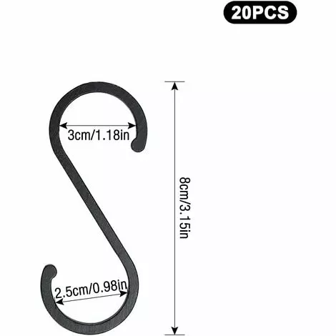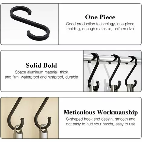 Ces crochets noirs en forme de S peuvent être utilisés pour organiser des ustensiles de cuisine tels que des casseroles, des poêles, des carlins et des cuillères.