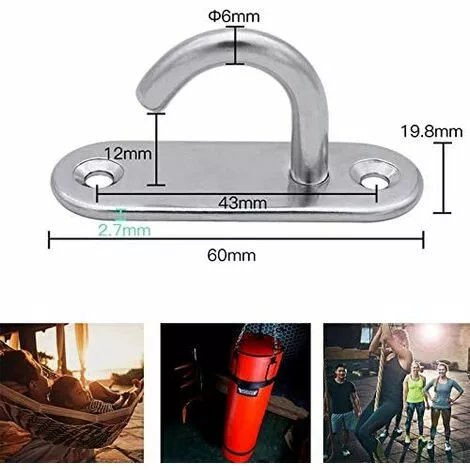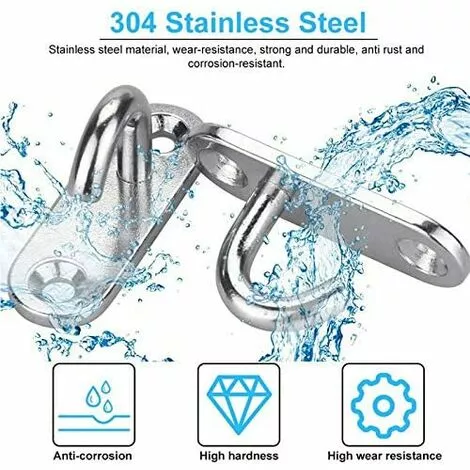 La capacité de charge du crochet robuste est très élevée. Nous utilisons de l’acier inoxydable solide, résistant à l’usure, solide et durable, résistant à la rouille et à la corrosion. La structure solide en acier inoxydable offre une plus grande résistance, les crochets de plafond ouverts sont très pratiques lorsque des cordes / boulons / sangles doivent être attachés ou retirés.