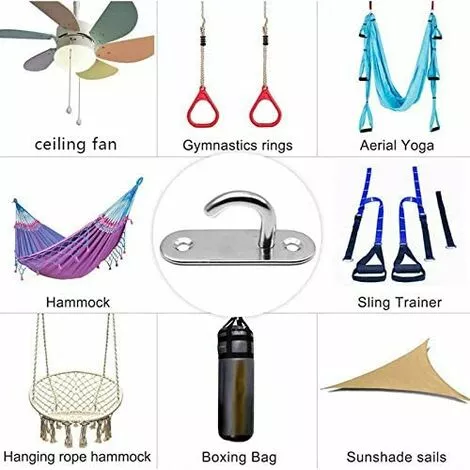 Principalement utilisé pour suspendre les ventilateurs de plafond, les lustres et autres objets du quotidien. Il peut également être utilisé pour suspendre des paniers de plantes, des lanternes, des cages à oiseaux, des contremarches, des hamacs de balançoire de yoga et d’autres objets lourds. Convient pour une utilisation n’importe où dans votre maison, y compris la cuisine, la salle de bain, le garage, le couloir, l’abri de jardin et plus encore.