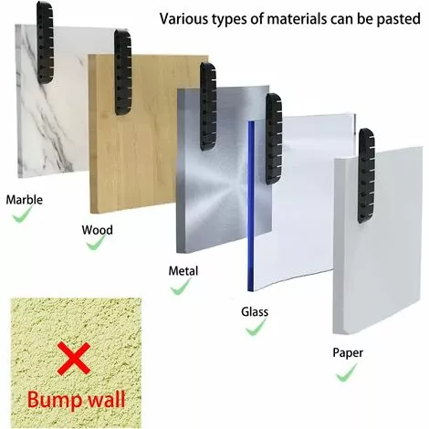Largement utilisé – Ils sont faciles à utiliser et adhèrent bien au marbre, au verre, au bois, au métal, au caoutchouc, au plastique ou à d’autres surfaces. Ne peut pas être appliqué sur des murs en bosse, son adhérence est très bonne, ne pas utiliser sur des murs peints, des murs inégaux, poussiéreux ou