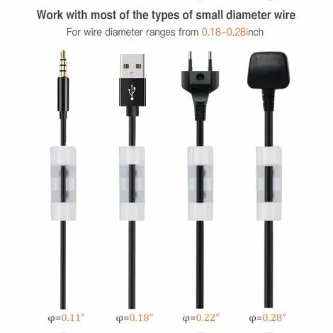 - 【Fixation de vis, plus solide】Il y a 2 trous au milieu des clips, qui vous permet d’installer plus solide. Il suffit de les visser si vous voulez un arrangement plus mieux. Diamètre du Câble 0.7cm(max), taille convient à la plupart des fils, petite taille et peu encombrant.