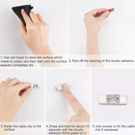 - 【Adhésion plus forte &Câbles Clips plus durables】L’adhésif en acrylique en arrière, l’adhérence forte aux surfaces glisses, ne convient pas aux surfaces humides, rugueuses ou poreuses. Le papier adhésif colle au dos du clip, inutile d’ajouter du papier adhésif supplémentaire.