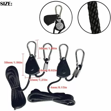Compatible: Il est compatible avec un support fiable et des jeux corrects du système et des mécanismes de serrage, à condition que les crochets et les boulons à œil s’adaptent. Avec un fermoir en métal pour attacher la corde à une extrémité, ces nouveaux cintres permettent de soulever et d’abaisser les lumières et autres choses facilement et en douceur. Découvrez votre tente suspendue, votre ventilateur et plus encore.
