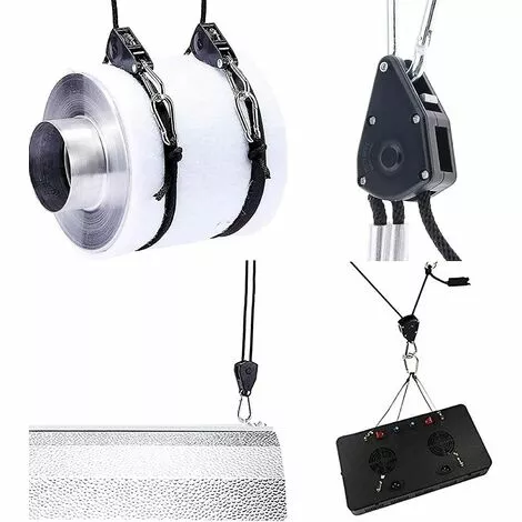 Large gamme d’applications: pour suspendre des lampes de culture à LED, des lampes d’aquarium, des ventilateurs, des systèmes de ventilation, des filtres, des réflecteurs, des pots de fleurs, des lampes de mineur, etc.