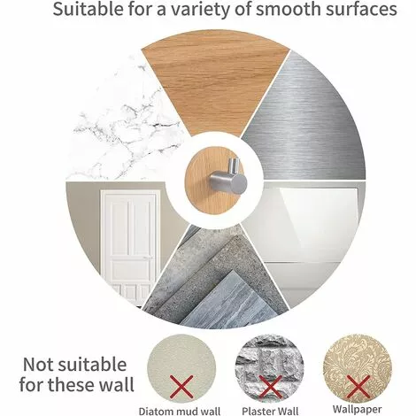 - Utilisation multiple: coins lisses pour protéger des vêtements de rayer, idéal accrochant une variété d’articles comprenant des manteaux, chapeau, sac à main, foulards, clef, parapluies, casque et plus. Applicable à la surface de la tuile, du verre, du bois, du plastique, du métal, de la mosaïque et ainsi de suite sans poussière, huile ou taches d’eau. Poids admissible jusqu’à 5lb/2,3 kg.