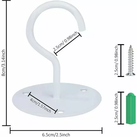 【Le forfait comprend】 Lot de 2 supports de suspension pour plantes avec 6 vis de montage. Dimension du crochet: env. 6,5 cm x 8,0 cm / 2,56 x 3,14 pouces, longueur de vis: env. 25 mm / 0,98 pouces.