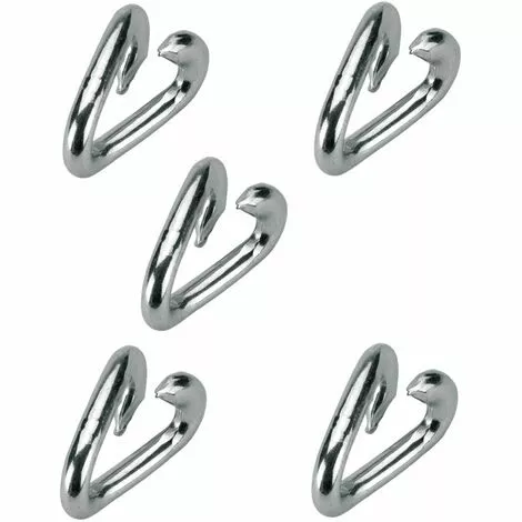 Lot de 5 maillon de sécurité ; Diamètre du profil d1 = 7mm ; Largeur intérieure d2 = 13,5mm ; Longueur intérieure h1 = 32mm ; fausse maille ; acier ; ouvert ; chaîne ; câble ; corde ; attache ; spirale ;