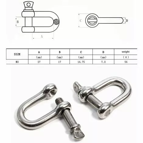 Manille En Acier Inoxydable En Forme De d, Filetée, Utilisée Pour Le Gréement Lourd, Le Recyclage De Véhicules, Le Remorquage, Facile à Transporter m5