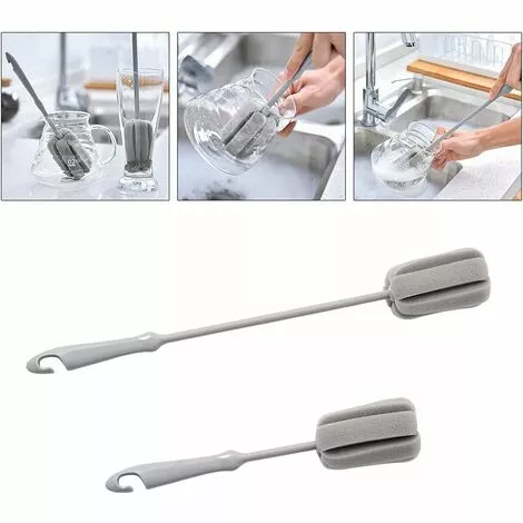 Biberon multifonctionnel à long manche, eau bouillie, verre, brosse éponge de lavage à crochet Description: 100% tout neuf