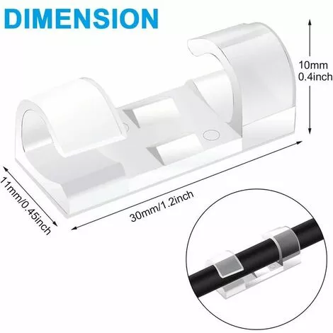 【20 clips de fil par boîte】 Longueur 30 mm / 1,2 pouces, largeur 11 mm / 0,45 pouces, hauteur 10 mm / 0,4 pouces; Convient aux câbles d’un diamètre (maximum) de 5 mm / 0,2 pouces, la taille convient à la plupart des fils, de petite taille et peu encombrant.