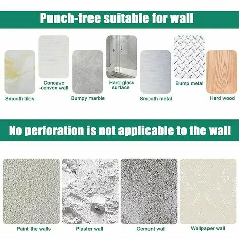 【Veuillez noter】 Vous pouvez le coller sur la surface dure et lisse comme les carreaux de céramique, les surfaces métalliques, les verres, etc. Ne convient pas aux murs peints, aux papiers peints, aux cloisons sèches et aux surfaces rugueuses, sinon cela pourrait endommager le mur.