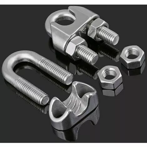 Caractéristiques du produit: Le clip de câble métallique en acier inoxydable à boulon M6 a les propriétés de résistance à la corrosion, de dureté élevée, de longue durée de vie et très durable. Un boulon en forme de U se compose d’une selle forgée et de deux écrous.