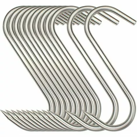 【Crochet en S Robuste】:Ce crochet en S en acier inoxydable a une surface lisse et durable pour une utilisation pour protéger votre main des rayures.Forte capacité de charge, robuste et durable, résistant à acide et à la chaleur.10 pièces.Longueur totale : 12cm. Épaisseur : 3 mm.