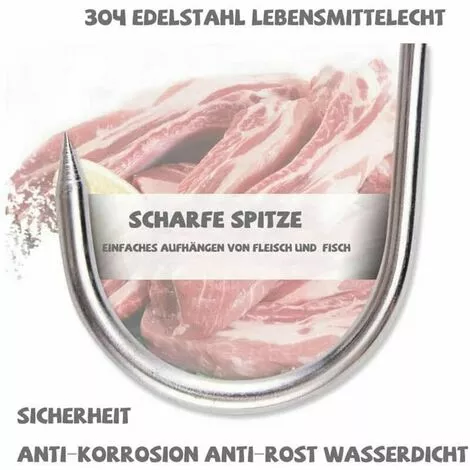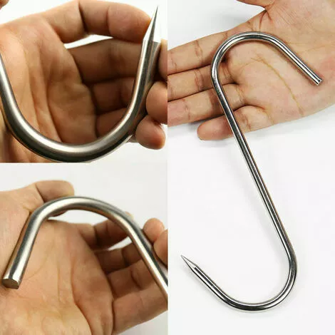 【Largement utilisé】: Ce crochet inox pour fumer peut accrocher du bœuf,du canard rôti,du poulet,du bacon,du jambon,du poisson et d’autres viandes.. Il peut être fumé, séché et pendu,convient à diverses occasions telles que l’abattoir, la boucherie et la famille.Idéal pour la transformation de la viande,les bouchers,les chasseurs,la suspension de la viande,le séchage et le fumage.