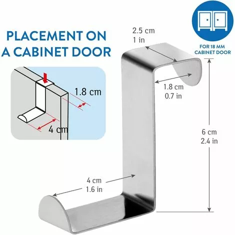 Crochets réversibles: 2 patères qui peuvent être placés sur le dessus d’une porte (40 mm) et sur le rebord d’un tiroir (18 mm)