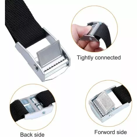 - Boucle réglable: Fixez d’abord la marchandise avec sangles de chargement, puis fixez avec une boucle en métal. Vous pouvez facilement ajuster sangles solides dans la mesure où vous en avez besoin pour vous assurer que les marchandises peuvent être parfaitement fixées. Facile à utiliser et fait gagner du temps.