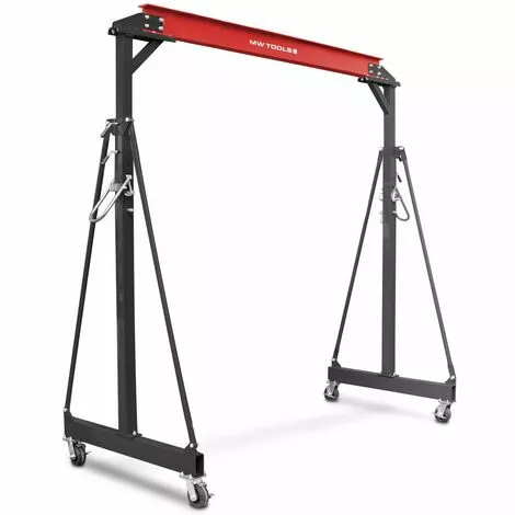 Caractéristiques : Réglable en hauteur de 2400 à 3600 mm Roues pivotantes avec frein Stable et sûre, mais compacte et facile à déplacer Poutre supérieure renforcée et poutre de roues avec lattes transversales Dimensions de la poutre 88 x 160 mm