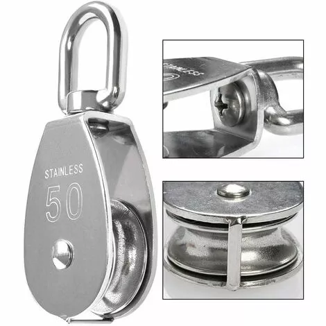Les poulies en acier inoxydable M50 peuvent ĂȘtre utilisĂ©es Ă l’intĂ©rieur et Ă l’extĂ©rieur, les cordes d’extĂ©rieur, les Ă©quipements de fitness, les garages, le chargement de machines, les rideaux, les cordes Ă linge; ne les surchargez pas; peuvent Ă©galement ĂȘtre utilisĂ©s pour l’escalade ou le canotage.