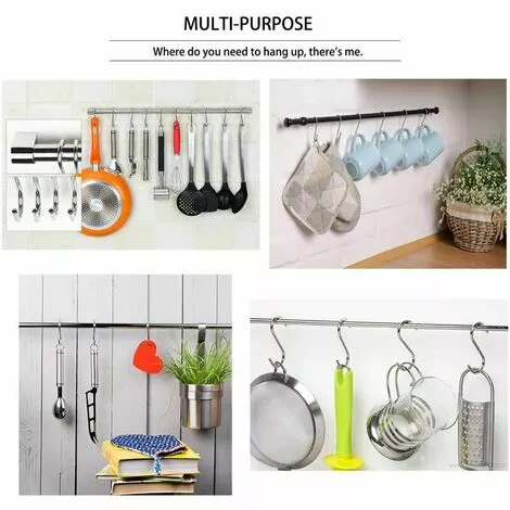 Robuste et pratique, le crochet en métal S est solide, épais, peut supporter un poids élevé, n’est pas facile à déformer et est largement utilisé dans les placards, les cuisines, les salles de bain, les salles de stockage, les garages, les ateliers, les bureaux, etc.