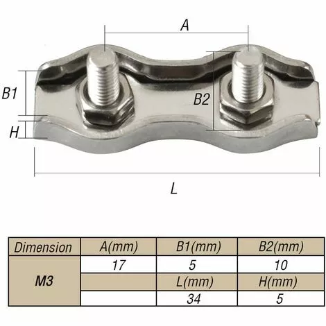 【ASSURANCE QUALITÉ】Notre pince à câble métallique M3 est faite d’acier inoxydable 304 authentique, pas de produits nickelés.L’acier inoxydable 304 a une excellente résistance à la rouille, une résistance à la corrosion et une bonne résistance à la corrosion cristalline, ce qui rend les performances de sécurité plus sûres Durable.