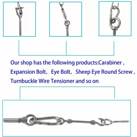 L’acier inoxydable 304, duretĂ© Ă©levĂ©e, rĂ©sistance Ă la corrosion, peut ĂŞtre utilisĂ© dans des environnements humides et ne vous inquiĂ©tez pas de la rouille.La surface du fil est lisse, la force est uniforme, il n’est pas facile Ă endommager et il est durable.
