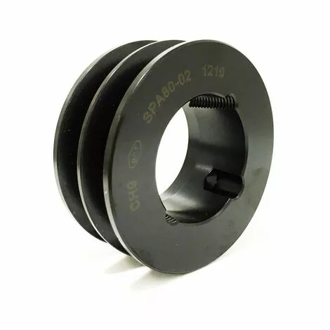 La poulie est fournie avec un moyeu amovible qui lui permet d’ĂŞtre montĂ©e sur des moteurs Ă©lectriques dont le diamètre d’arbre est diffĂ©rent. Ce système ingĂ©nieux permet un remplacement facile et rapide de la poulie sur l’arbre moteur, sans qu’il soit nĂ©cessaire de rĂ©aliser un alĂ©sage.