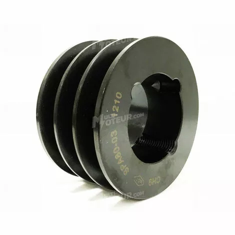La poulie est un dispositif mécanique permettant la transmission du mouvement. Elle se fixe sur l’arbre du moteur et entraîne une courroie.