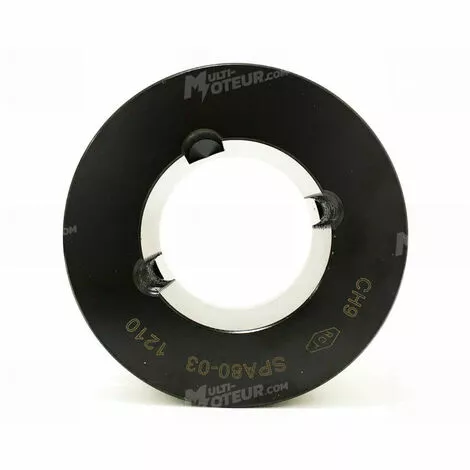 La poulie est fournie avec un moyeu amovible qui lui permet d’être montée sur des moteurs électriques dont le diamètre d’arbre est différent. Ce système ingénieux permet un remplacement facile et rapide de la poulie sur l’arbre moteur, sans qu’il soit nécessaire de réaliser un alésage.