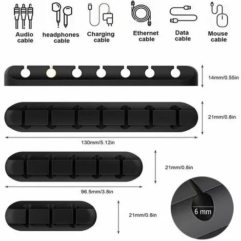 Convient pour tenir des câbles de moins de 6 mm tels que des câbles d’ordinateur, des câbles audio, des câbles de chargement USB et des câbles réseau.