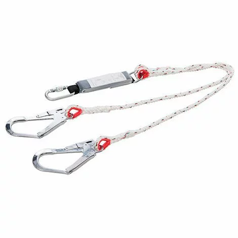 Composé de crochets en alliage d’acier forgé, d’un mousqueton, de cordes en nylon et d’un absorbeur d’énergie en polyester intégré dans une gaine plastique robuste. Mousqueton d’échafaudage et mousqueton à vis. Permet de fixer un harnais de sécurité à un point d’ancrage approprié. Testée et certifiée conforme aux normes EN362 et EN355. Fournie avec sacoche de rangement.