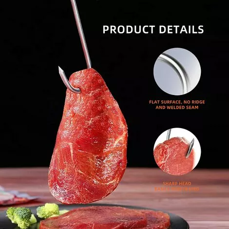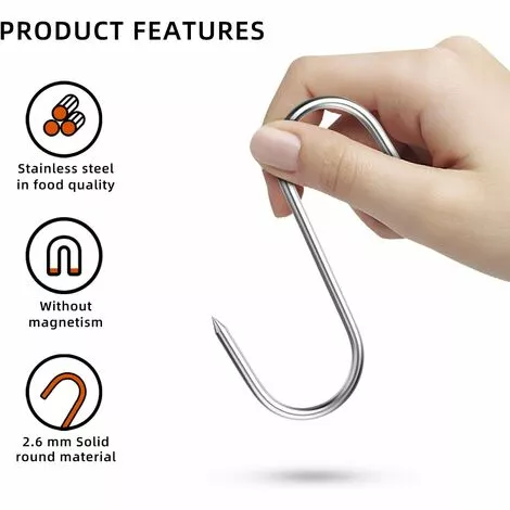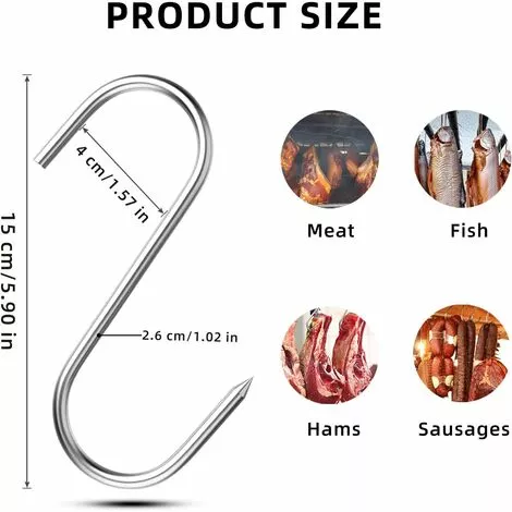 - Crochet de cuisine multifonction : crochet en forme de S, notre crochet à viande a une pointe pointue, adapté pour le poisson, la viande, le barbecue, le fumoir, et peut également être utilisé comme crochet à viande, crochet à fumer, crochet à viande, crochet à saucisses, crochet alimentaire, jambon, etc.