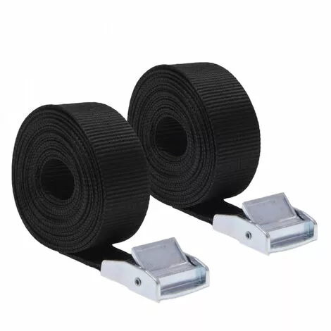 Chaque sangle avec boucle est de couleur noire et mesure 5 m en longueur, 25 mm de largeur.