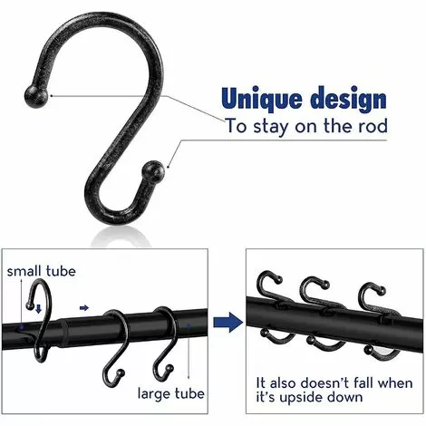 RÉSISTANT À LA ROUILLE : nos anneaux de rideau de douche sont fabriqués à partir d’excellents matériaux en alliage de zinc et ne rouilleront jamais. CROCHETS DURABLES ET RÉSISTANTS : le crochet utilise un fil métallique de 5,0 mm, suffisamment solide pour supporter des rideaux de douche et d’autres objets lourds, et peut résister un poids maximum de 50 lb.BONNE CONCEPTION: Notre forme en S de conception unique, qui réduit les frottements et les déchirures, glisse facilement et en douceur sur n’importe quel diamètre.La boule d’extrémité du crochet est conçue pour rester sur la tige et ne tombe pas. Utilisations : non seulement pour les rideaux de douche, mais aussi pour suspendre des serviettes, des casseroles et des poêles, des tasses à café, des vêtements, des plantes dans la salle de bain, la cuisine, la chambre, le bureau et le jardin, etc. COULEUR UNIQUE : la conception de couleur unique ajoute une touche rétro à votre salle de bain La couleur et le traitement de surface des crochets du rideau de douche sont tous traités manuellement, ce qui est plus beau et durable S’il vous plaît, ne pensez pas qu’il s’agit d’un fondu de couleur lorsque vous obtenez la vraie chose, il s’agit d’un design de couleur unique
