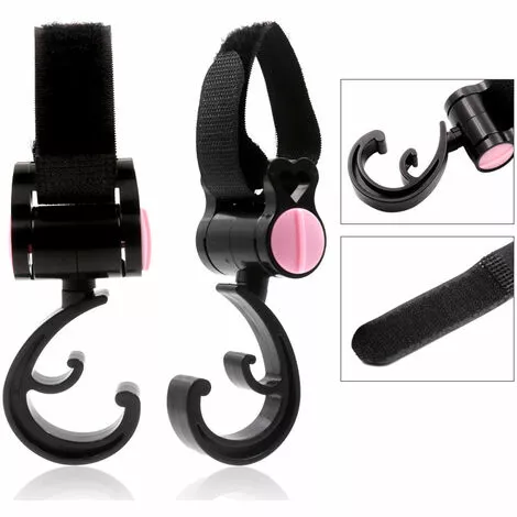 Design unique.Le crochet de poussette a un design à double crochet qui peut accrocher plus de choses. Ils sont tous équipés d’un velcro solide qui permet de fixer les accessoires de poussette et de landau.