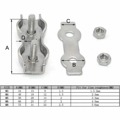 Domaine d’application : serre-câbles en acier inoxydable duplex pour câbles en acier inoxydable, adaptés aux environnements extérieurs ou humides