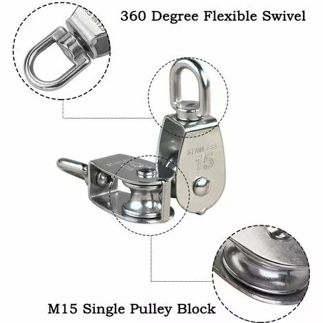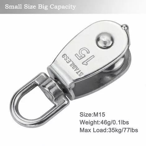 Applications larges: Poulie coulissante flexible à forte capacité de charge pour de nombreuses applications. Utilisation de la gravité et du patinage pour les travaux de levage, de transmission ou de traction, conçu pour être utilisé avec une corde ou un cordon à l’intérieur et à l’extérieur avec une fonction de glissement en douceur.