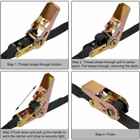 Résistance : la sangle à cliquet se resserre fermement jusqu’à une charge de 250 kg / 551 lb. limite de charge de travail.
